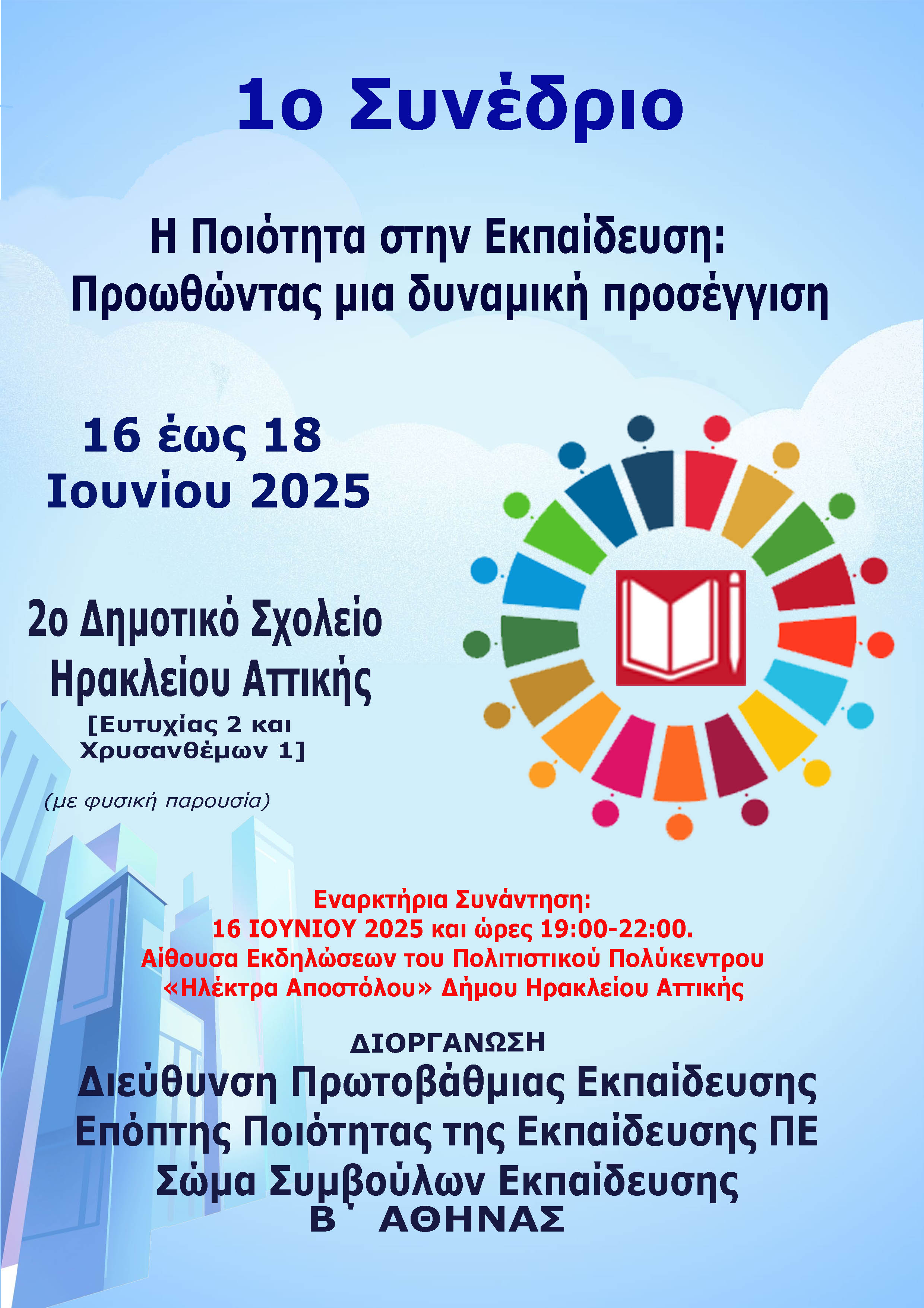 Η Διεύθυνση Πρωτοβάθμιας Εκπαίδευσης Β ́ Αθήνας, ο Επόπτης Ποιότητας της Εκπαίδευσης Π.Ε. Β ́ Αθήνας και το Σώμα των Συμβούλων Εκπαίδευσης ανακοινώνουν τη διοργάνωση Επιστημονικού Συνεδρίου, με στόχο τη δημιουργία ενός χώρου ανταλλαγής ιδεών, εμπειριών και βέλτιστων πρακτικών που προάγουν την ποιότητα στην εκπαίδευση.